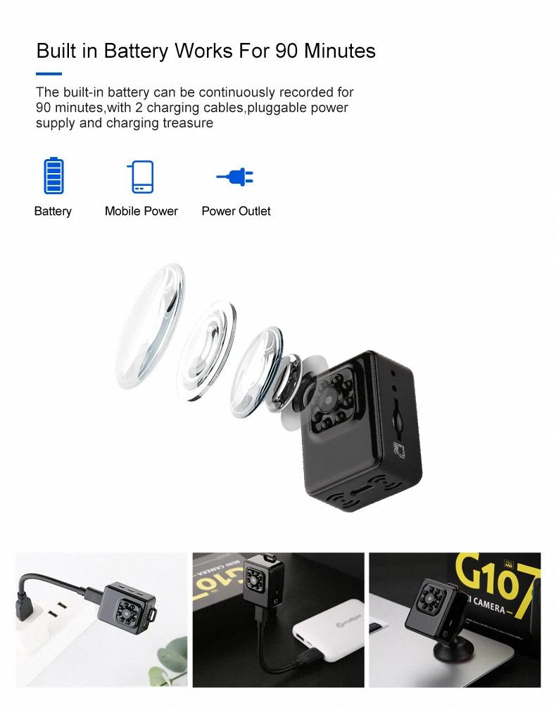 When the power is insufficient, the audio will be saved automatically, and the recording while charging is supported, so that the whole day video recording can be maintained