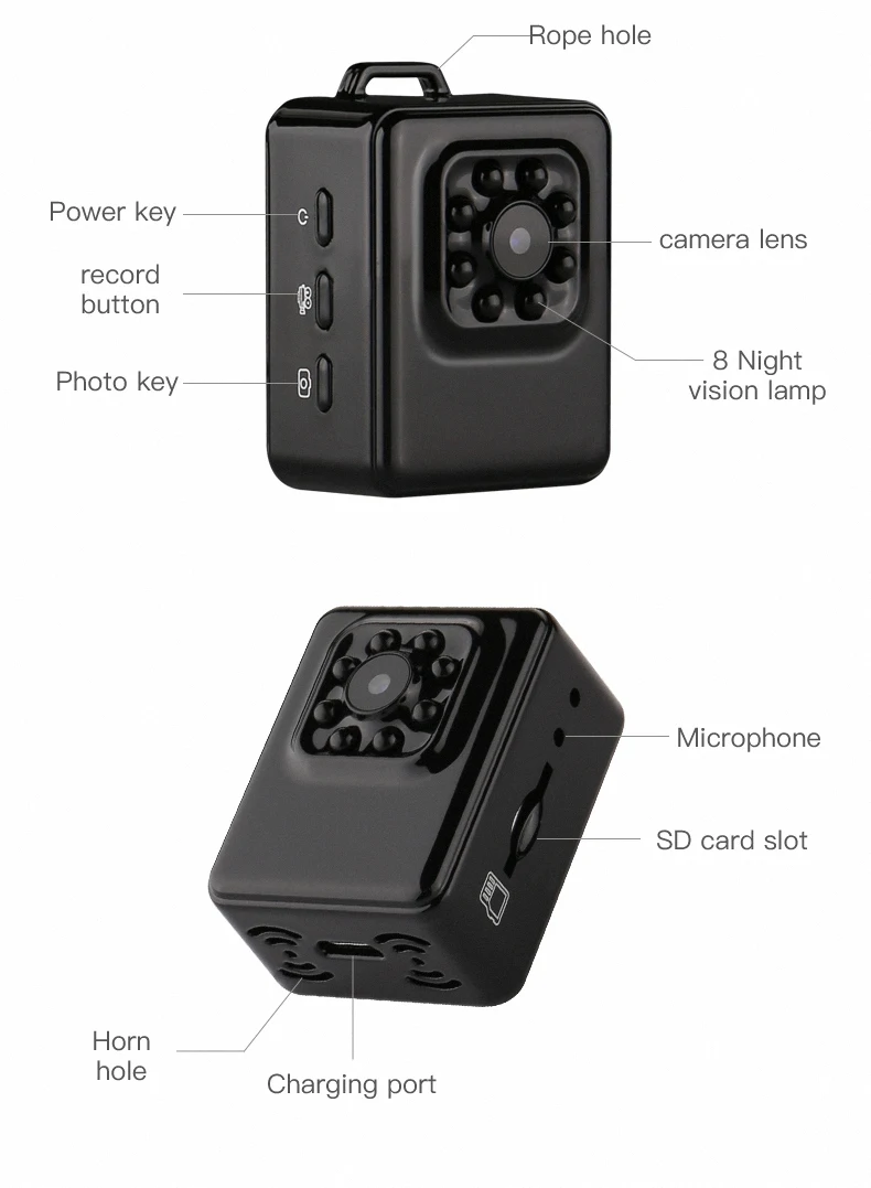 Mini Sport Camera with Motion Detection and invisible Night Vision.
